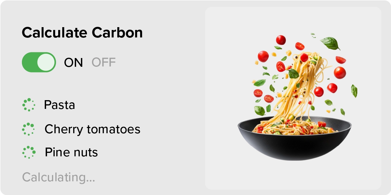 Carbon labelling solutions for the food industry. Auto-calculate, improve a recipe's carbon footprint per serving and display it on your menus and food labels.